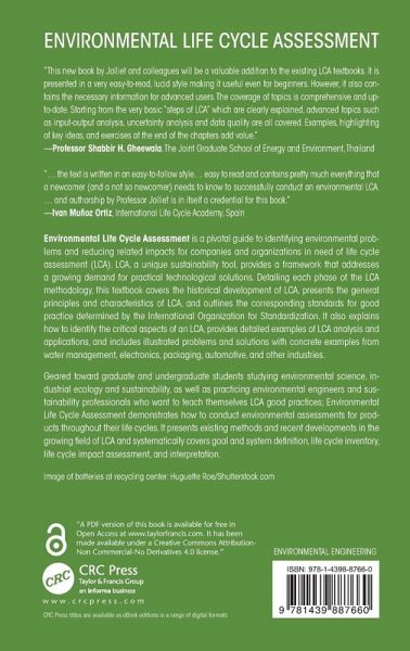 Environmental Life Cycle Assessment is a pivotal guide to identifying environmental problems and reducing related impacts for companies and organizations in need of life cycle assessment (LCA). LCA, a unique sustainability tool, provides a framework that addresses a growing demand for practical technological solutions. Detailing each phase of the LCA methodology, this textbook covers the historical development of LCA, presents the general principles and characteristics of LCA, and outlines the corresponding standards for good practice determined by the International Organization for Standardization. It also explains how to identify the critical aspects of an LCA, provides detailed examples of LCA analysis and applications, and includes illustrated problems and solutions with concrete examples from water management, electronics, packaging, automotive, and other industries. In addition, readers will learn how to: Use consistent criteria to realize and evaluate an LCA independently of individual interests Understand the LCA methodology and become familiar with existing databases and methods based on the latest results of international research Analyze and critique a completed LCA Apply LCA methodology to simple case studies Geared toward graduate and undergraduate students studying environmental science and industrial ecology, as well as practicing environmental engineers, and sustainability professionals who want to teach themselves LCA good practices, Environmental Life Cycle Assessment demonstrates how to conduct environmental assessments for products throughout their life cycles. It presents existing methods and recent developments in the growing field of LCA and systematically covers goal and system definition, life cycle inventory, life cycle impact assessment, and interpretation.