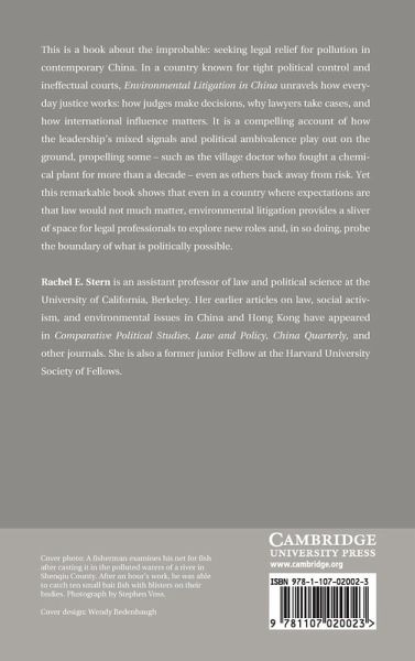 This is a book about the improbable: seeking legal relief for pollution in contemporary China. In a country known for tight political control and ineffectual courts, Environmental Litigation in China unravels how everyday justice works: how judges make decisions, why lawyers take cases, and how international influence matters. It is a readable account of how the leadership's mixed signals and political ambivalence play out on the ground - propelling some, such as the village doctor who fought a chemical plant for more than a decade, even as others back away from risk. Yet this remarkable book shows that even in a country where expectations would be that law wouldn't much matter, environmental litigation provides a sliver of space for legal professionals to explore new roles and, in so doing, probe the boundary of what is politically possible.