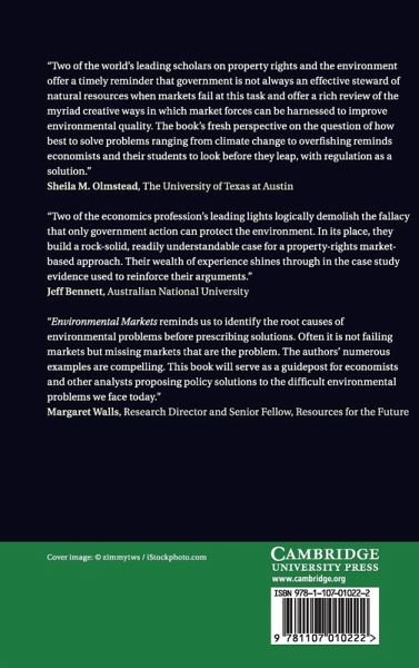 Environmental Markets explains the prospects of using markets to improve environmental quality and resource conservation. No other book focuses on a property rights approach using environmental markets to solve environmental problems. This book compares standard approaches to these problems using governmental management, regulation, taxation, and subsidization with a market-based property rights approach. This approach is applied to land, water, wildlife, fisheries, and air and is compared to governmental solutions. The book concludes by discussing tougher environmental problems such as ocean fisheries and the global atmosphere, emphasizing that neither governmental nor market solutions are a panacea.