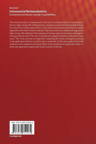 This book provides a comprehensive overview on mechanochemistry including its history, high-energy ball milling process, equipment used and fundamentals behind the observed scientific phenomena. It also shows that mechanochemistry is highly applicable in the field of waste treatment. The text reviews 1017 studies utilizing mostly high-energy ball milling for the treatment of various types of consumer, technogenic and agricultural waste. The text is divided into chapters based on individual waste types. The book presents an Appendix compiling all studies arranged according to the application that the recycled waste is meant for. In this way, readers from both academia and companies interested either in the treatment of a particular waste, or particular application might easily locate sections of interest.