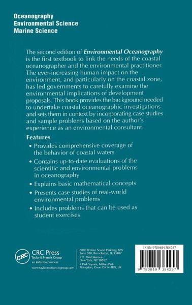 The second edition of Environmental Oceanography is the first textbook to link the needs of the coastal oceanographer and the environmental practitioner. The ever-increasing human impact on the environment, and particularly on the coastal zone, has led governments to carefully examine the environmental implications of development proposals. This book provides the background needed to undertake coastal oceanographic investigations and sets them in context by incorporating case studies and sample problems based on the author's experience as an environmental consultant.
