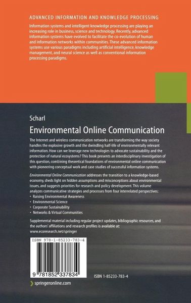 This book brings together high quality articles exploring the design, implementation, management, funding, promotion and evaluation of networked information systems that advocate sustainability and the protection of natural ecosystems. Case studies of deployed and planned information systems complement theoretical work on the methodological, technological and organizational foundations of environmental online communication.