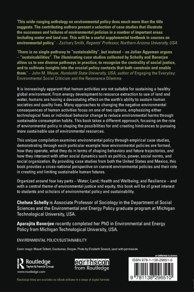 This unique compilation examines environmental policy through empirical case studies, demonstrating through each particular example how environmental policies are formed, how they operate, what they do in terms of shaping behaviors and future trajectories, and how they intersect with other social dynamics such as politics, power, social norms, and social organization. By providing case studies from both the United States and Mexico, this book provides a cross-national perspective on current environmental policies and their role in creating and limiting sustainable human futures.