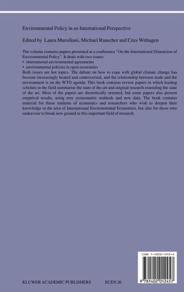 This volume inc1udes a selection of papers presented at the second European Research Conference (EURESCO) on "The International Dimension of Environmental Policy" held in Acquafredda di Maratea, Italy, in October 2001. We thank those who made this conference possible: the European Science Foundation (ESF), which provided financial and organizational support; the European Commission EURESCO Programme; the Fondazione ENI Enrico Mattei (FEEM) in Milan; and GLOBUS, Tilburg University. The European Science Foundation (ESF), the EURESCO Programme, FEEM and GLOBUS cannot be held responsible for the contents and/or opinions expressed in this volume. Our gratitude also goes to the people who assisted us in editing this volume: the papers' referees, the authors, our publisher Kluwer, and especially to Stefan Jost in Rostock who handled the manuscript with maximum care during the process of copy-editing. None of these persons bears any responsibilities for remaining errors or shortcomings. Laura Marsiliani, Michael Rauscher, and Cees Withagen [Marsiliani, L., Rauscher, M. and Withagen, c.] (eds.), [Environmental Policy in an International Perspective], xi. © 2003 Kluwer Academic Publishers. Introduction a C Laura Marsiliani , Michael Rauscherb and Cees Withagen a University 0/ Rochester and University 0/ Durham, b University 0/ Rostock, C Free University Amsterdam and Ti/burg University 1. THE ISSUES Nowadays, the proteetion of the environment is one of the most debated issues in the international are~a. Because of the transboundary nature of pollution and the characteristic of the environment as aglobaI public good, international co operation is highly desirable.