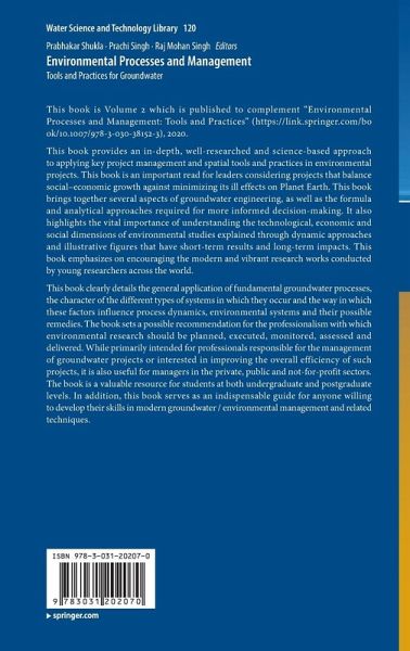 This book provides an in-depth, well-researched and science-based approach to applying key project management and spatial tools and practices in environmental projects. This book is an important read for leaders considering projects that balance social-economic growth against minimizing its ill effects on Planet Earth. This book brings together several aspects of groundwater engineering, as well as the formula and analytical approaches required for more informed decision-making. It also highlights the vital importance of understanding the technological, economic and social dimensions of environmental studies explained through dynamic approaches and illustrative figures that have short-term results and long-term impacts. This book emphasizes on encouraging the modern and vibrant research works conducted by young researchers across the world.