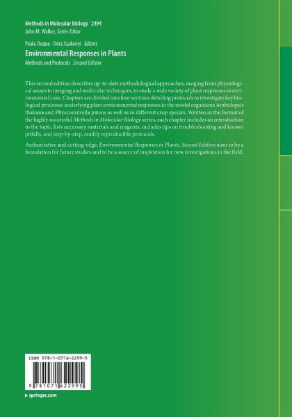 This second edition describes up-to-date methodological approaches, ranging from physiological assays to imaging and molecular techniques, to study a wide variety of plant responses to environmental cues. Chapters are divided into four sections detailing protocols to investigate key biological processes underlying plant environmental responses in the model organisms Arabidopsis thaliana and Physcomitrella patens as well as in different crop species. Written in the format of the highly successful Methods in Molecular Biology series, each chapter includes an introduction to the topic, lists necessary materials and reagents, includes tips on troubleshooting and known pitfalls, and step-by-step, readily reproducible protocols.