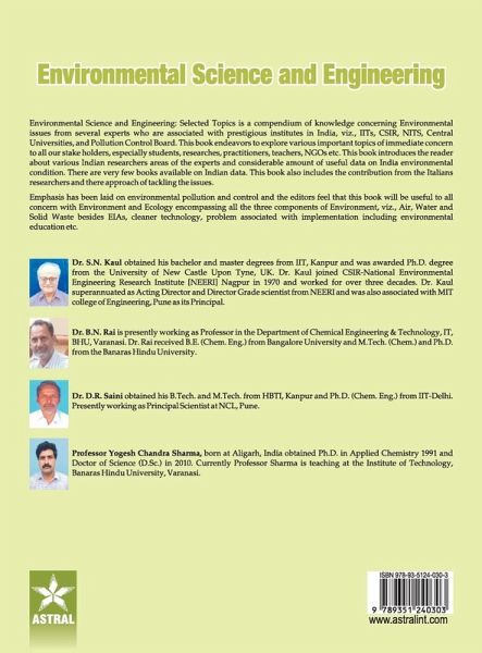 Environmental Science and Engineering: Selected Topics is a compendium of knowledge concerning Environmental issues from several experts who are associated with prestigious institutes in India, Viz., IITs, CSIR, NITS, Central University, and Pollution Control Board. This book endeavors to explore various important topics of immediate concern to all our stake holders, especially students, researchers, practitioners, teachers, NGOs etc. This book introduces the reader about various Indian researchers areas of the experts and considerable amount of useful data on India environmental condition. There are very few books available on India data. This book also includes the contribution from the Italians researchers and there approach of tackling the issues. Emphasis has been laid on environmental pollution and control and the editors feel that this book will be useful to all concern with Environmental and Ecology encompassing all the three components of Environmental, viz., Air, Water and Solid Waste besides EIAs, cleaner technology, problem associated with implementation including environmental education etc.