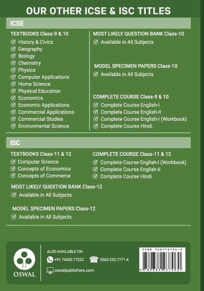 Oswal ICSE Class IX Environmental Science Textbook aims to educate students about the Environment with an interesting approach based on latest curriculum Environmental Science Textbook Highlights: Latest advancements are given as facts to develop interests Activities and exercises are provided for practical knowledge Effective learning method incorporated