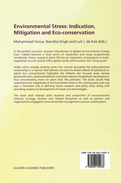 In the present scenario, stresses induced due to global environmental change have indeed become a focal point of researches and study programmes worldwide. Stress caused to plant life has an important consequence to both, vegetation as such and all other global cycles which sustain this `living earth'. Unlike other already existing works this volume elucidates the plant-pollutant relationship in a manner that defines not only the drastic effects of pollutants on plants but concomitantly highlights the hitherto less focused areas namely phytoindication, phytoremediation and stress tolerant…mehr
