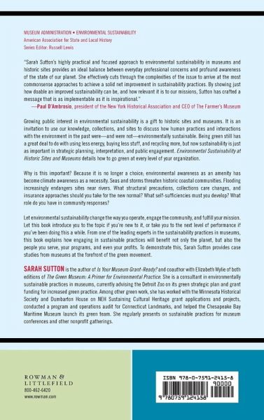 Environmental Sustainability at Historic Sites and Museums details how to go green at every level of your organization. From one of the leading experts in the sustainability practices in museums, this book explains how engaging in sustainable practices will benefit not only the planet, but also the people you serve, your programs and even your profits. To demonstrate this, Sutton provides case studies from museums at the forefront of the green movement.
