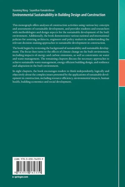The book begins by reviewing the background of sustainability and sustainable development. The focus then turns to the effects of climate change on the built environment, including impacts of energy and carbon emissions, as well as constraints on water and waste management. The remaining chapters discuss the necessary approaches to achieve sustainable waste management, energy efficient building design, and resilience and adaptation in the built environment