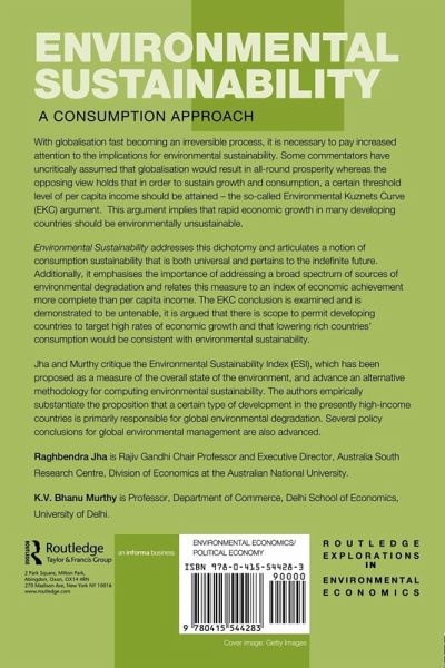 With globalization fast becoming an irreversible process, it is necessary to pay increased attention to the implications for environmental sustainability. However, the so-called environmental Kuznets curve (EKC) argument implies that rapid economic growth in many developing countries should be environmentally unsustainable. Environmental Sustainability addresses this dichotomy and articulates a notion of consumption sustainability that is both universal and pertains to the indefinite future. Additionally, it emphasizes the importance of addressing a broad spectrum of sources of environmental degradation and relates this measure to an index of economic achievement more complete than per capita income. As well as the EKC, authors Jha and Murthy also critique the Environmental Sustainability Index (ESI) and empirically substantiate the proposition that a certain type of development in the presently high-income countries is primarily responsible for global environmental degradation. Several policy conclusions for global environmental management are also advanced. Throughout, Jha and Murthy comprehensively evaluate existing approaches to environmental sustainability and critically review empirical studies of environmental degradation, and economic development, making this an invaluable source of information for those concerned with environmental economics and political economy.