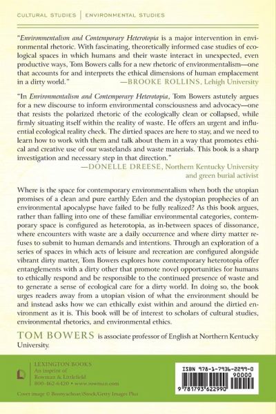 A 2023 Choice Reviews Outstanding Academic Title Where is the space for contemporary environmentalism when both the utopian promises of a clean and pure earthly Eden and the dystopian prophecies of an environmental apocalypse have failed to be fully realized? As this book argues, rather than falling into one of these familiar environmental categories, contemporary space is configured as heterotopia, as in-between spaces of dissonance, where encounters with waste are a daily occurrence and where dirty matter refuses to submit to human demands and intentions. Through an exploration of a series of spaces in which acts of leisure and recreation are configured alongside vibrant dirty matter, Tom Bowers explores how contemporary heterotopia offers entanglements with a dirty other that promote novel opportunities for humans to ethically respond and be responsible to the continued presence of waste and to generate a sense of ecological care for a dirty world. In doing so, the book urges readers away from a utopian vision of what the environment should be and instead asks how we can ethically exist within and around the dirtied environment as it is. This book will be of interest to scholars of cultural studies, environmental rhetorics, and environmental ethics.