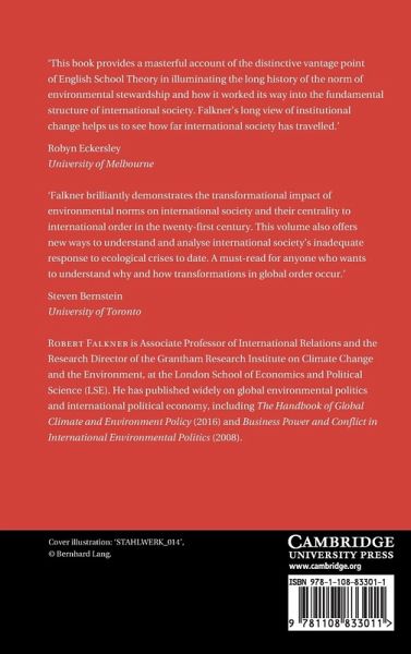 1. Introduction: The Greening of Global International Society Part I. Theory: 2. English School Theory and Global Environmental Politics 3. The Idea of Environmentalism Part II. History: 4. The Origins of Global Environmentalism 5. The Emergence of Environmental Stewardship as a Primary Institution 6. The Globalisation of Environmental Stewardship 7. Environmental Stewardship between Consolidation and Contestation Part III. Analytical Perspectives: 8. Solidarist Ambition 9. Pluralist Constraints 10. World Society to the Rescue? Part IV. Conclusions: 11. Conclusions: International Relations in the Anthropocene.