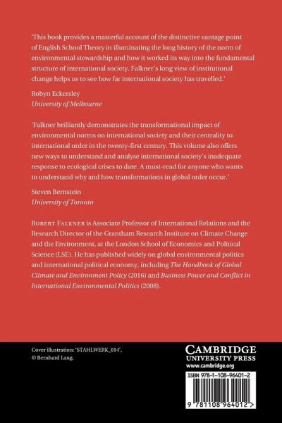 1. Introduction: The Greening of Global International Society Part I. Theory: 2. English School Theory and Global Environmental Politics 3. The Idea of Environmentalism Part II. History: 4. The Origins of Global Environmentalism 5. The Emergence of Environmental Stewardship as a Primary Institution 6. The Globalisation of Environmental Stewardship 7. Environmental Stewardship between Consolidation and Contestation Part III. Analytical Perspectives: 8. Solidarist Ambition 9. Pluralist Constraints 10. World Society to the Rescue? Part IV. Conclusions: 11. Conclusions: International Relations in the Anthropocene.