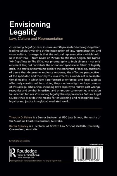 Envisioning Legality: Law, Culture and Representation is a path-breaking collection of some of the world's leading cultural legal scholars addressing issues of law, representation and the image. Law is constituted in and through the representations that hold us in their thrall, and this book focuses on the ways in which cultural legal representations not only reflect or contribute to an understanding of law, but constitute the very fabric of legality itself. As such, each of these 'readings' of cultural texts takes seriously the cultural as a mode of envisioning, constituting and critiquing the law. And the theoretically sophisticated approaches utilised here encompass more than simply an engagement with 'harmless entertainment'. Rather they enact and undertake specific political and critical engagements with timely issues, such as: the redressing of past wrongs; recognising and combatting structural injustices; and orienting our political communities in relation to uncertain futures. Envisioning Legality thereby presents a cultural legal studies that provides the means for engaging in robust, sustained and in-depth encounters with the nature and role of law in a global, mediated world.