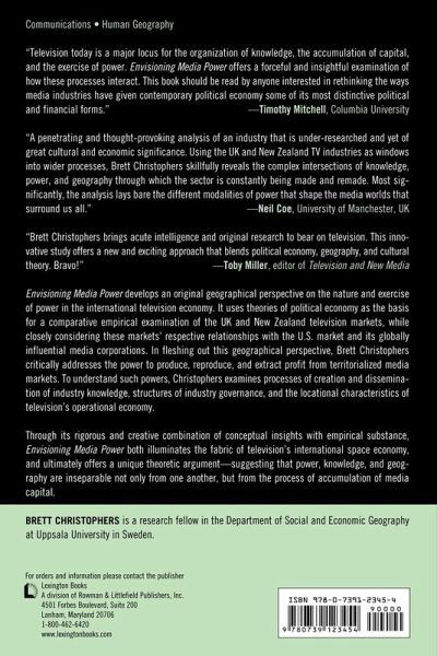 Envisioning Media Power develops an original geographical perspective on the nature and exercise of power in the international television economy, focusing on the UK and New Zealand markets, and on their respective relationships with the U.S. market and its globally influential media corporations. In illuminating the fabric of television's international space economy, the book argues that power, knowledge and geography are inseparable not only from one another, but from the process of accumulation of media capital.