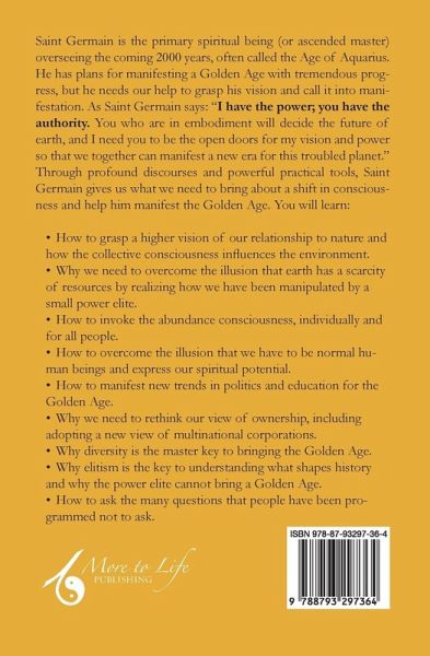 Saint Germain is the primary spiritual being (or ascended master) overseeing the coming 2000 years, often called the Age of Aquarius. He has plans for manifesting a Golden Age with tremendous progress, but he needs our help to grasp his vision and call it into manifestation. As Saint Germain says: "I have the power to manifest a Golden Age on earth, but I do not have the authority. You who are in embodiment have the authority to decide the future of earth, and I need you to be the open doors for my power so that we together can manifest a new era for this troubled planet." Through profound discourses, Saint Germain explains the shift in consciousness that is needed in order for us to be able to help him manifest the Golden Age. You will learn: - How to grasp a higher vision of our relationship to nature and how profoundly the collective consciousness influences the environment. - The dynamics of how golden ages rise and fall. - Why we need to overcome the illusion that earth has a scarcity of resources by realizing how we have been manipulated by a small power elite. - How to invoke the abundance consciousness, individually and for all people. - How to overcome the illusion that we have to be normal human beings and instead dare to express our spiritual potential. - Profound teachings on the politics and education of the Golden Age. - Why we need to rethink our view of ownership, including adopting a new view of multinational corporations. - Why diversity is the master key to bringing the Golden Age - Why elitism is the key to understanding what shapes history and why the power elite cannot bring a Golden Age. - How to ask the many question that people have been programmed not to ask.
