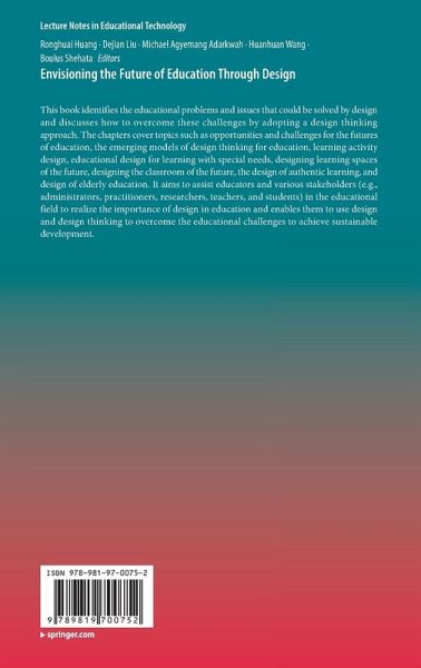 This book identifies the educational problems and issues that could be solved by design and discusses how to overcome these challenges by adopting a design thinking approach. The chapters cover topics such as opportunities and challenges for the futures of education, the emerging models of design thinking for education, learning activity design, educational design for learning with special needs, designing learning spaces of the future, designing the classroom of the future, the design of authentic learning, and design of elderly education. It aims to assist educators and various stakeholders (e.g., administrators, practitioners, researchers, teachers, and students) in the educational field to realize the importance of design in education and enables them to use design and design thinking to overcome the educational challenges to achieve sustainable development.