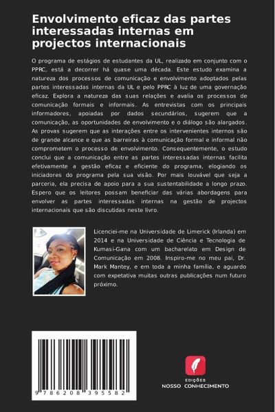 O programa de estágios de estudantes da UL, realizado em conjunto com o PPRC, está a decorrer há quase uma década. Este estudo examina a natureza dos processos de comunicação e envolvimento adoptados pelas partes interessadas internas da UL e pelo PPRC à luz de uma governação eficaz. Explora a natureza das suas relações e avalia os processos de comunicação formais e informais. As entrevistas com os principais informadores, apoiadas por dados secundários, sugerem que a comunicação, as oportunidades de envolvimento e o diálogo são alargados. As provas sugerem que as interações entre os intervenientes internos são de grande alcance e que as barreiras à comunicação formal e informal não comprometem o processo de envolvimento. Consequentemente, o estudo conclui que a comunicação entre as partes interessadas internas facilita efetivamente a gestão eficaz e eficiente do programa, elogiando os iniciadores do programa pela sua visão. Por mais louvável que seja a parceria, ela precisa de apoio para a sua sustentabilidade a longo prazo. Espero que os leitores possam beneficiar das várias abordagens para envolver as partes interessadas internas na gestão de projectos internacionais que são discutidas neste livro.