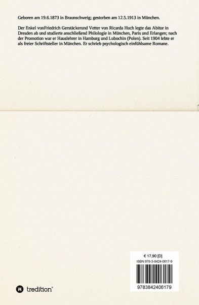 Geboren am 19.6.1873 in Braunschweig; gestorben am 12.5.1913 in München. Der Enkel vonFriedrich Gerstäckerund Vetter von Ricarda Huch legte das Abitur in Dresden ab und studierte anschließend Philologie in München, Paris und Erlangen; nach der Promotion war er Hauslehrer in Hamburg und Lubochin (Polen). Seit 1904 lebte er als freier Schriftsteller in München. Er schrieb psychologisch einfühlsame Romane.