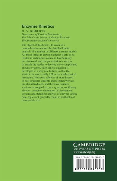 Originally published in 1977, this book covers in a comprehensive manner the detailed kinetic analysis of a number of different enzyme models. Each kinetic equation is developed in a stepwise fashion so that the reader can more easily follow the mathematical procedure. However, more advanced subjects are also introduced and the book contains sections on coupled enzyme systems, oscillatory kinetics, computer simulation of biochemical systems and statistical analysis of enzyme kinetic data. This book will be of value to anyone with an interest in enzyme kinetics and the development of biochemistry.