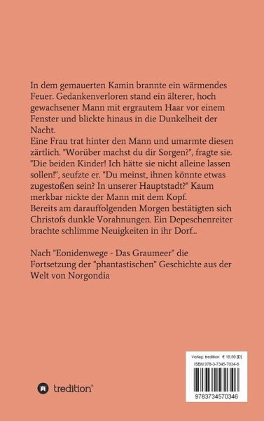Als Anka und Lolle sich endlich ihrem ersehnten Ziel Gotarhaven, der Königshauptstadt Norgondias, nähern, wähnen sie die Lösung des Rätsels greifbar nahe. Doch weit gefehlt! Norgondia hält für die beiden Kinder weitere Geheimnisse parat. Geheimnisse, die sie nie erwartet haben und die sie sich so, selbst in ihren kühnsten Gedanken, niemals hätten vorstellen können. Alte Bekannte und neue Freunde eilen den beiden zu Hilfe. Nach wie vor können sie diese auch wirklich gut gebrauchen..."Das Rotland" aus der Erzählung der "Eonidenwege" stellt die Fortsetzung des Buches "Das Graumeer" dar. Es wirft Licht auf die seltsamen Vorkommnisse in Norgondia und erhellt damit auch etwas seine Leserinnen und Leser.
