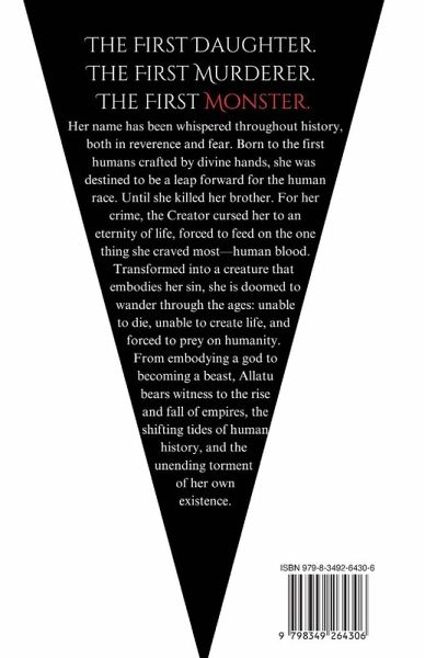 The First Daughter. The First Murderer. The First Monster. Her name has been whispered throughout history, both in reverence and fear. Born to the first humans crafted by divine hands, she was destined to be a leap forward for the human race. Until she killed her brother. For her crime, the Creator cursed her to an eternity of life, forced to feed on the one thing she craved most-human blood. Transformed into a creature that embodies her sin, she is doomed to wander through the ages: unable to die, unable to create life, and forced to prey on humanity. From embodying a god to becoming a beast, Allatu bears witness to the rise and fall of empires, the shifting tides of human history, and the unending torment of her own existence.