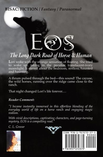 Eos - The Long, Dark Road of Horse & Human Lori woke with the strange sensation of floating. She tried to wake up, taking in the peculiar translucent-ivory moonlight. It stirred about the bedroom, restless, haunted and haunting. A thrum pulsed through the bed-this sound! The cayuse, the wild horses, running over the ridge came close to the ranch. That night changed Lori's life forever.... EOS - an enchanting story caught between reality and the supernatural, exploring the long, long history of horse and human unlike any you've ever read!