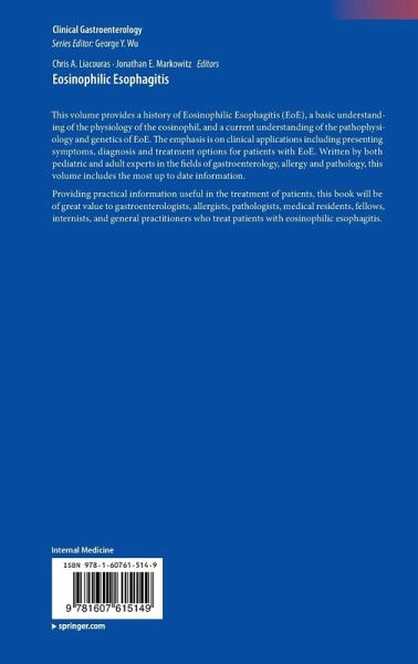 "The book, Eosinophilic Esophagitis, encompasses the historical literature as well as the up-to-date knowledge on the subject. ... The book contains numerous illustrative figures and tables and provides informative summary points at the end of the chapters. ... Providing useful practical information, this book will be of great value to gastroenterologists, allergologists, pediatricians, internists, pathologists, endoscopic surgeons, and fellows, all who deal with EoE patients." (Zeinab A. El-Sayed, World Allergy Organization Journal, worldallergy.org, Vol. 11 (5), May, 2014)