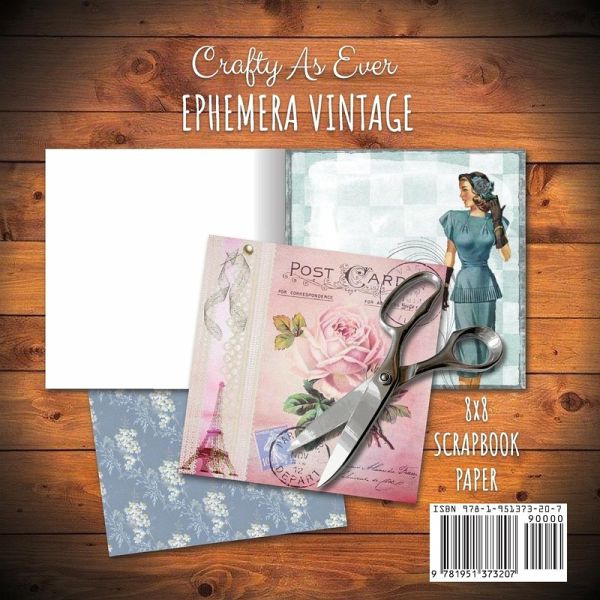 Decorative craft paper with an Ephemera Vintage design for your art journaling and scrapbook ideas Specialty designer paper book to cut, tear, and collage 6 designs 2 of each, 8x8 Inches, Double-sided sheets, non-perforated Our unique collection of colorful backgrounds and craft paper is perfect for all kinds of crafting, stationery, decoupage, origami, invitations, printmaking, bookbinding, handicraft, handmade paper beads and jewelry, as well as other crafty art projects.