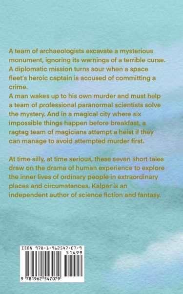 A team of archaeologists excavate a mysterious monument, ignoring its warnings of a terrible curse. A diplomatic mission turns sour when a space fleet's heroic captain is accused of committing a crime. A man wakes up to his own murder and must help a team of professional paranormal scientists solve the mystery. And in a magical city where six impossible things happen before breakfast, a ragtag team of magicians attempt a heist if they can manage to avoid attempted murder first. At time silly, at time serious, these seven short tales draw on the drama of human experience to explore the inner lives of ordinary people in extraordinary places and circumstances. Kalpar is an independent author of science fiction and fantasy.