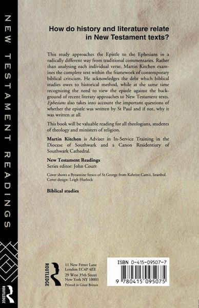 This study approaches the Epistle to the Ephesians in a radically different way from traditional commentaries. Rather than analysing each individual verse, Martin Kitchen examines the complete text within the framework of contemporary biblical criticism. He acknowledges the debt which biblical studies owes to historical method, while at the same time recognizing the need to view the Epistle against the background of recent literary approaches to New Testament texts. Ephesians also takes into account the important questions of whether the Epistle was written by St Paul and, if not, why it was written at all. This book will be valuable reading for all theologians, students of theology and ministers of religion.
