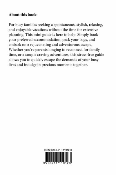 For busy families seeking a spontaneous, stylish, relaxing, and enjoyable vacations without the time for extensive planning. This mini guide is here to help. Simply book your preferred accommodation, pack your bags, and embark on a rejuvenating and adventurous escape. Whether you're parents longing to reconnect for family time, or a couple craving adventures, this stress-free guide allows you to quickly escape the demands of your busy lives and indulge in precious moments together.