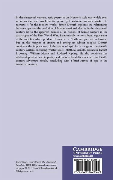 In the nineteenth century, epic poetry in the Homeric style was widely seen as an ancient and anachronistic genre, yet Victorian authors worked to recreate it for the modern world. Simon Dentith explores the relationship between epic and the evolution of Britain's national identity in the nineteenth century up to the apparent demise of all notions of heroic warfare in the catastrophe of the First World War. Paradoxically, writers found equivalents of the societies which produced Homeric or Northern epics not in Europe, but on the margins of empire and among its subject peoples. Dentith considers the implications of the status of epic for a range of nineteenth-century writers, including Walter Scott, Matthew Arnold, Elizabeth Barrett Browning, William Morris and Rudyard Kipling. He also considers the relationship between epic poetry and the novel and discusses late nineteenth-century adventure novels, concluding with a brief survey of epic in the twentieth century.