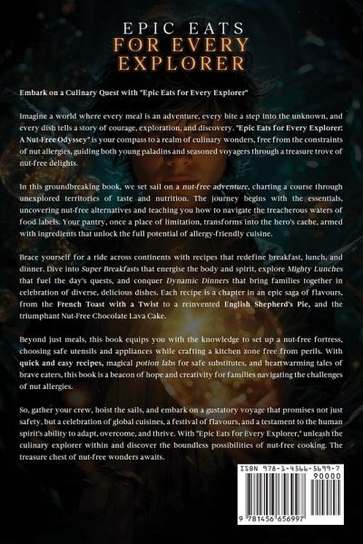 Embark on a Culinary Quest with "Epic Eats for Every Explorer" Imagine a world where every meal is an adventure, every bite a step into the unknown, and every dish tells a story of courage, exploration, and discovery. "Epic Eats for Every Explorer: A Nut-Free Odyssey" is your compass to a realm of culinary wonders, free from the constraints of nut allergies, guiding both young paladins and seasoned voyagers through a treasure trove of nut-free delights. In this groundbreaking book, we set sail on a nut-free adventure, charting a course through unexplored territories of taste and nutrition. The journey begins with the essentials, uncovering nut-free alternatives and teaching you how to navigate the treacherous waters of food labels. Your pantry, once a place of limitation, transforms into the hero's cache, armed with ingredients that unlock the full potential of allergy-friendly cuisine. Brace yourself for a ride across continents with recipes that redefine breakfast, lunch, and dinner. Dive into Super Breakfasts that energise the body and spirit, explore Mighty Lunches that fuel the day's quests, and conquer Dynamic Dinners that bring families together in celebration of diverse, delicious dishes. Each recipe is a chapter in an epic saga of flavours, from the French Toast with a Twist to a reinvented English Shepherd's Pie, and the triumphant Nut-Free Chocolate Lava Cake. Beyond just meals, this book equips you with the knowledge to set up a nut-free fortress, choosing safe utensils and appliances while crafting a kitchen zone free from perils. With quick and easy recipes, magical potion labs for safe substitutes, and heartwarming tales of brave eaters, this book is a beacon of hope and creativity for families navigating the challenges of nut allergies. So, gather your crew, hoist the sails, and embark on a gustatory voyage that promises not just safety, but a celebration of global cuisines, a festival of flavours, and a testament to the human spirit's ability to adapt, overcome, and thrive. With "Epic Eats for Every Explorer," unleash the culinary explorer within and discover the boundless possibilities of nut-free cooking. The treasure chest of nut-free wonders awaits.