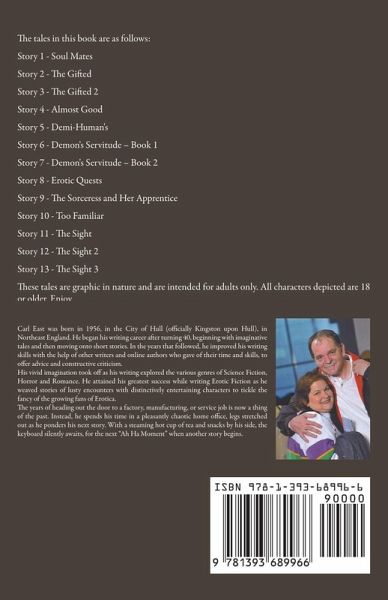 The tales in this book are as follows: Story 1 - Soul Mates Story 2 - The Gifted Story 3 - The Gifted 2 Story 4 - Almost Good Story 5 - Demi-Human's Story 6 - Demon's Servitude - Book 1 Story 7 - Demon's Servitude - Book 2 Story 8 - Erotic Quests Story 9 - The Sorceress and Her Apprentice Story 10 - Too Familiar Story 11 - The Sight Story 12 - The Sight 2 Story 13 - The Sight 3 These tales are graphic in nature and are intended for adults only. All characters depicted are 18 or older. Enjoy