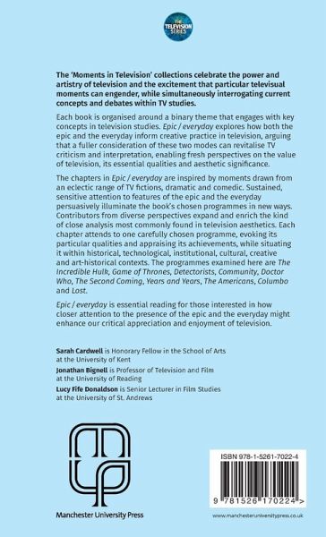 This collection explores the presence within television of the epic and the everyday, with reference to a range of fictional television programming, including episodic series and serial dramas, sitcoms, science-fiction, spy dramas, childrenâ s TV and detective shows. -- .