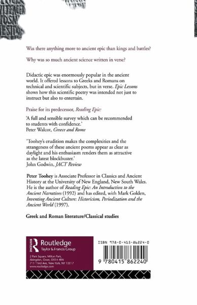 Didactic epic was enormously popular in the ancient world. It was used to teach Greeks and Romans technical and scientific subjects - in verse. Epic Lessons shows how this scientific poetry was aimed to instruct and entertain.