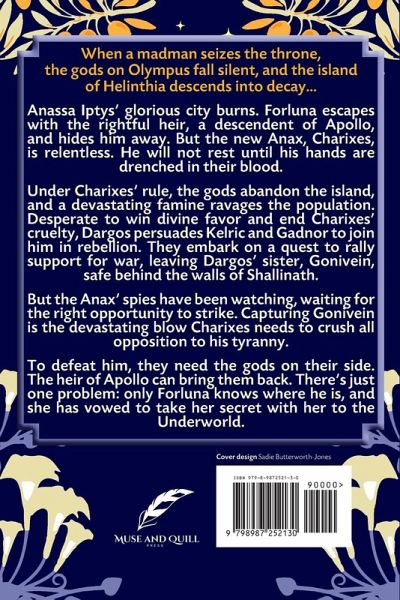 EXPLORE THE UNTOLD EPIC OF ANCIENT GREECE! Anassa Iptys' glorious city burns. Forluna escapes with the rightful heir, a descendent of Apollo, and hides him away. But the new Anax, Charixes, is relentless. He will not rest until his hands are drenched in their blood. Under Charixes' rule, the gods abandon the island, and a devastating famine ravages the population. Desperate to win divine favor and end Charixes' cruelty, Dargos persuades Kelric and Gadnor to join him in rebellion. They embark on a quest to rally support for war, leaving Dargos' sister, Gonivein, safe behind the walls of Shallinath. But the Anax' spies have been watching, waiting for the right opportunity to strike. Capturing Gonivein is the devastating blow Charixes needs to crush all opposition to his tyranny. To defeat him, they need the gods on their side. The heir of Apollo can bring them back. There's just one problem: only Forluna knows where he is, and she has vowed to take her secret with her to the Underworld. Epic of Helinthia is the first in a series of four. An original Greek myth of warring gods and the mortals who must find a way to end the conflict before it destroys their world. ~*~*~*~ "An AMAZING DEBUT filled with gods and goddesses, heroes and villains, love and loss, blood and tears: everything a fantasy novel needs to keep readers turning the page late into the night!" - Maria V. Snyder, New York Times Bestselling author of The Poison Study "Epic of Helinthia is A PAGE-TURNER OF AN EPIC-FANTASY DEBUT! Inspired by ancient Greek culture and mythology (and well-researched, too), this story is rich with political intrigue, plot twists, and betrayal, oh my! Can't wait to see what happens next." - Sharon Lynn Fisher, author of Salt & Broom