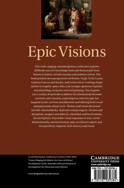 This wide-ranging, interdisciplinary collection explores different ways of visualising Greek and Roman epic from Homer to Statius, in both ancient and modern culture. The book presents new perspectives on Homer, Virgil, Ovid, Lucan, Valerius Flaccus and Statius, and covers the re-working of epic matter in tragedy, opera, film, late antique speeches of praise, story-boarding, sculpture and wall-painting. The chapters use a variety of methods to address the relationship between narrative and visuality, exploring how and why epic has inspired artists, authors and directors, and offering fresh visual interpretations of epic texts. Themes and issues discussed include: intermediality, ekphrasis and panegyric, illusion and deception, imagery and deferral, alienation and involvement, the multiplicity of possible visual responses to texts, three-dimensionality, miniaturisation, epic as cultural capital, and the specificity of genres, both literary and visual.