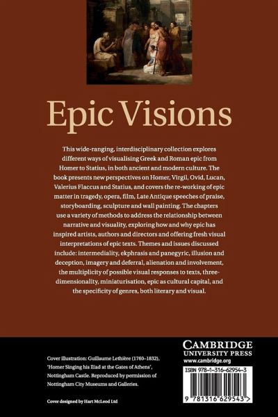 This wide-ranging, interdisciplinary collection explores different ways of visualising Greek and Roman epic from Homer to Statius, in both ancient and modern culture. The book presents new perspectives on Homer, Virgil, Ovid, Lucan, Valerius Flaccus and Statius, and covers the re-working of epic matter in tragedy, opera, film, late antique speeches of praise, story-boarding, sculpture and wall-painting. The chapters use a variety of methods to address the relationship between narrative and visuality, exploring how and why epic has inspired artists, authors and directors, and offering fresh visual interpretations of epic texts. Themes and issues discussed include: intermediality, ekphrasis and panegyric, illusion and deception, imagery and deferral, alienation and involvement, the multiplicity of possible visual responses to texts, three-dimensionality, miniaturisation, epic as cultural capital, and the specificity of genres, both literary and visual.