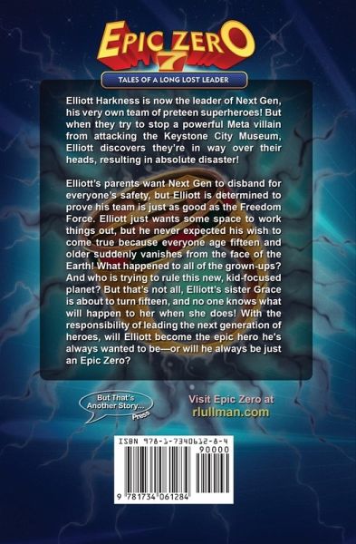 Book 7 in the bestselling, award-winning Epic Zero series! *Over 2,000 five-star series reviews on Amazon and Goodreads. Elliott Harkness is now the leader of Next Gen, his very own team of preteen superheroes! But when they try to stop a powerful Meta villain from attacking Keystone City, Elliott discovers they're in way over their heads, resulting in absolute disaster! Elliott's parents want Next Gen to disband for everyone's safety, but Elliott is determined to prove his team is just as good as the Freedom Force. Elliott just wants some space to work things out, but he never expected his wish to come true, because everyone age fifteen and older suddenly vanishes from the face of the Earth! What happened to all of the grown-ups? And who is trying to rule this new, kid-focused planet? But that's not all, Elliott's sister Grace is about to turn fifteen, and no one knows what will happen to her when she does! With the responsibility of leading the next generation of heroes, will Elliott become the epic hero he's always wanted to be--or will he always be just an Epic Zero? Epic Zero 7 is the seventh book in the hilarious, action-packed series that will entertain kids, middle school students, and adults. Epic Zero 7 includes 16 illustrated character profiles and a full glossary of superpowers. Click "Buy Now" to read today!