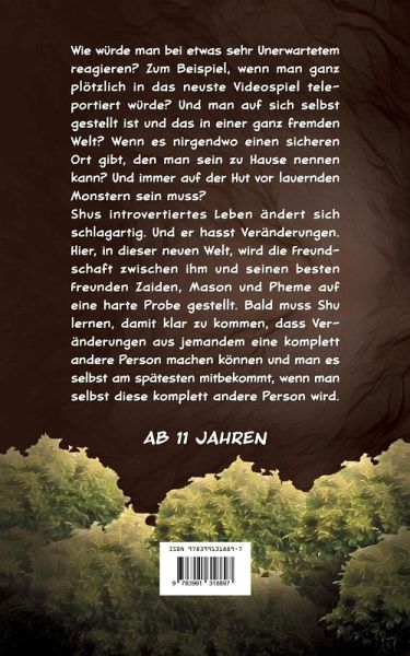 Wie würde man bei etwas sehr Unerwartetem reagieren? Zum Beispiel, wenn man ganz plötzlich in das neuste Videospiel teleportiert würde? Und man auf sich selbst gestellt ist und das in einer ganz fremden Welt? Wenn es nirgendwo einen sicheren Ort gibt, den man sein zu Hause nennen kann? Und immer auf der Hut vor lauernden Monstern sein muss?Shus introvertiertes Leben ändert sich schlagartig. Und er hasst Veränderungen. Hier, in dieser neuen Welt, wird die Freundschaft zwischen ihm und seinen besten Freunden Zaiden, Mason und Pheme auf eine harte Probe gestellt. Bald muss Shu lernen, damit klar zu kommen, dass Veränderungen aus jemandem eine komplett andere Person machen können und man es selbst am spätesten mitbekommt, wenn man selbst diese komplett andere Person wird.