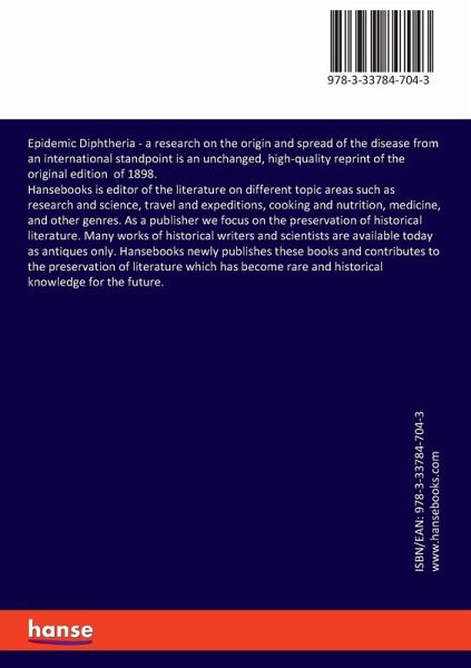 Epidemic Diphtheria - a research on the origin and spread of the disease from an international standpoint is an unchanged, high-quality reprint of the original edition of 1898.
