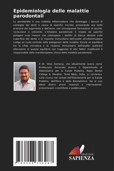 La parodontite è una malattia infiammatoria che danneggia i tessuti di sostegno dei denti a causa di specifici microbi, provocando una lenta erosione del legamento e dell'osso, con conseguente formazione di tasche, recessione o entrambi. L'infezione parodontale è iniziata da specifici patogeni orali invasivi che colonizzano i biofilm di placca dentale sulla superficie del dente e la risposta immunitaria dell'ospite all'infiammazione svolge un ruolo centrale nella patogenesi della malattia. Esiste un equilibrio tra la sfida microbica e la risposta immunitaria dell'ospite; qualsiasi alterazione di questo equilibrio con l'aggiunta di altri fattori modificanti è responsabile della manifestazione clinica della malattia parodontale.