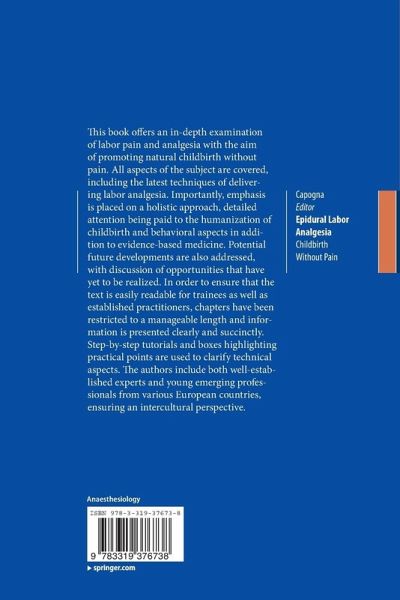 This book offers an in-depth examination of labor pain and analgesia with the aim of promoting natural childbirth without pain. All aspects of the subject are covered, including the latest techniques of delivering labor analgesia. Importantly, emphasis is placed on a holistic approach, detailed attention being paid to the humanization of childbirth and behavioral aspects in addition to evidence-based medicine. Potential future developments are also addressed, with discussion of opportunities that have yet to be realized. In order to ensure that the text is easily readable for trainees as well as established practitioners, chapters have been restricted to a manageable length and information is presented clearly and succinctly. Step-by-step tutorials and boxes highlighting practical points are used to clarify technical aspects. The authors include both well-established experts and young emerging professionals from various European countries, ensuring an intercultural perspective.