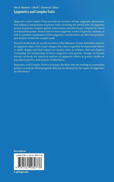 This book will provide an overview of basic epigenetic phenomena; interaction between epigenetic and genetic factors; and the influence of epigenetic factors on inheritance. Epigenetic states may contribute to the penetrance of genetic polymorphisms or mutations and thereby modify inheritance patterns. This may result in non-Mendelian inheritance of genetic traits such as observed in common human disease. The relationship between epigenetics and genetics, however, has not been comprehensively summarized yet. The topic is being more and more appreciated lately due to considerable advances in genomic and epigenomic approaches to study the origins of human disease. The editors will focus not only on describing epigenetic characteristics, mechanisms and results, but also on how considerations of epigenetics can alter interpretation and analysis of risks for complex traits. This book will be a resource for those who have been working in human genetics or analysis of human genetic data and are studying the impact of epigenetics on inheritance. An overview will be given of the impacts of inter-individual variation in epigenetic states from major changes (errors in genomic imprinting) that cause congenital developmental defects to subtle changes and their impact on complex traits. The editors will discuss the relationship between epigenetic changes and genetic changes in human disease. Several chapters will also focus on statistical analysis of epigenetics effects, either in human disease genetic studies, or in population genetics.