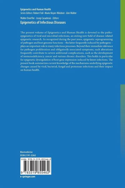 The present volume of Epigenetics and Human Health is devoted to the patho-epigenetics of viral and microbial infections, an exiting new field of disease-related epigenetic research. As recognized during the past years, epigenetic reprogramming of pathogen and host genome functions - the latter frequently induced by pathogens - plays an important role in many infectious processes. Beyond their immediate relevance for pathogen proliferation and obligatorily associated symptoms, such alterations frequently contribute to severe additional complications, such as the development of immunodeficiency, cancer and various chronic disorders. This holds in particular for epigenetic dysregulation of host gene expression induced by latent infections. The present book summarizes current knowledge of the mechanisms underlying epigenetic changes caused by viral, bacterial, fungal and protozoan infections and their impact on human health.