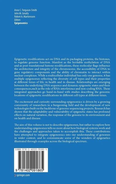 Epigenetic modifications act on DNA and its packaging proteins, the histones, to regulate genome function. Manifest as the heritable methylation of DNA and as post-translational histone modifications, these molecular flags influence the architecture and integrity of the chromosome, the accessibility of DNA to gene regulatory components and the ability of chromatin to interact within nuclear complexes. While a multicellular individual has only one genome, it has multiple epigenomes reflecting the diversity of cell types and their properties at different times of life; in health and in disease. Relationships are emerging between the underlying DNA sequence and dynamic epigenetic states and their consequences,such as the role of RNA interference and non-coding RNA. These integrated approaches go hand-in-hand with studies describing the genomic locations of epigenetic modifications in different cell types at different times.
